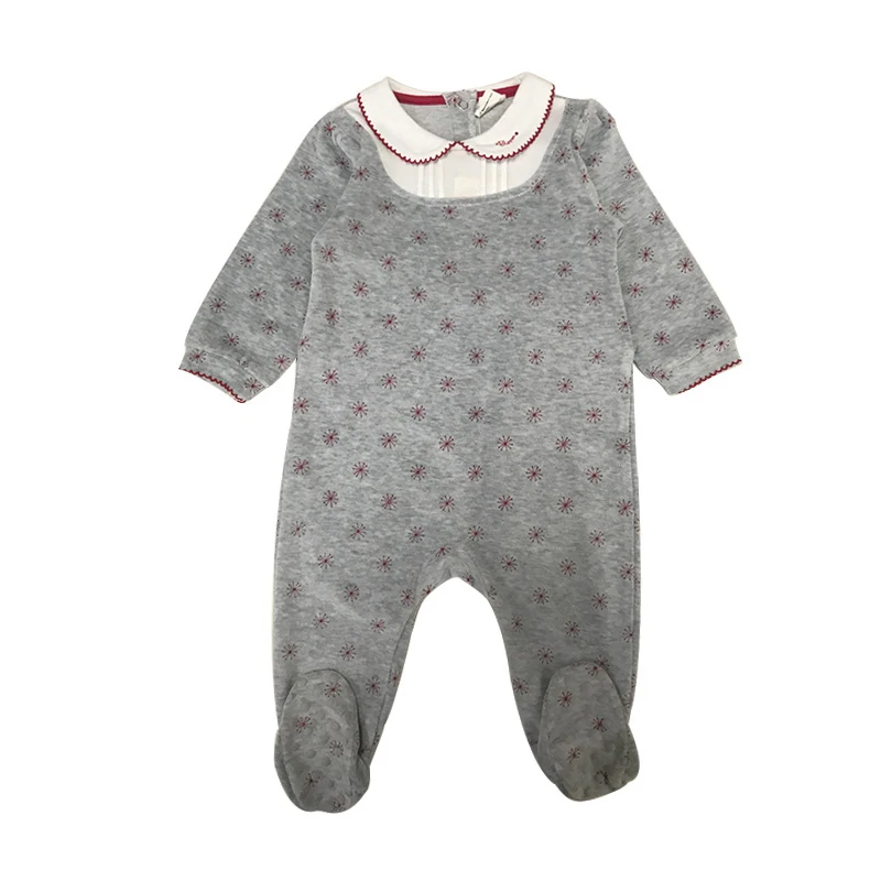 Le motif flocon de neige qui orne la barboteuse apporte une touche poétique et hivernale. Sa teinte gris chiné se marie à merveille avec les bordures délicatement soulignées de rouge, créant un contraste doux et élégant. Le col rond orné d’un liseré fin ajoute une note classique et raffinée, parfaite pour les bébés filles comme pour les garçons. Chaque détail a été pensé pour allier esthétique et confort, sans compromis.